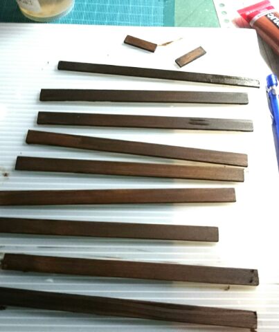 添付画像はヒノキ板を切る→微調整→アクリル絵具で着色 ……まで済ませた状態です。